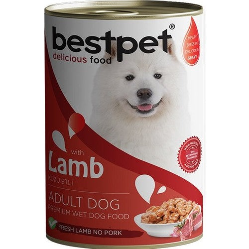 BestPet Kuzulu Köpek Konservesi 415 Yetişkin köpekler için özenle formüle edilmiş, deri tüy kalitesini arttıran, dengeli aminoasit, vitamin ve mineralleri içeren, soslu parça kuzu etli komple konserve yetişkin köpek mamasıdır.