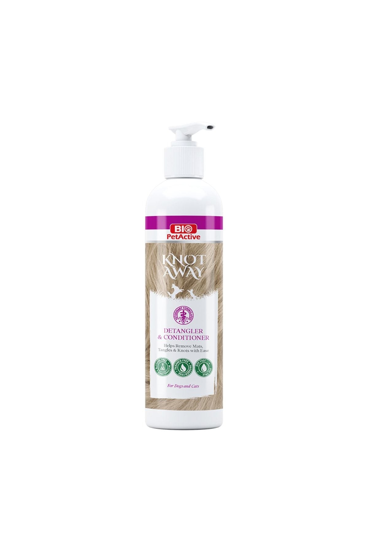 Bio PetActive Knot Away Detangler & Conditioner saç kökünü yumuşatmak için hızla kaplar, dolaşmaları ve düğümleri kolaylıkla açmaya yardımcı olur. Cilt ve tüylere kadifemsi his veren, pürüzsüzlük sağlayan, kıtık açma uygulamalarında yağsız bir etki sağlayan tüy bakım ürünüdür.