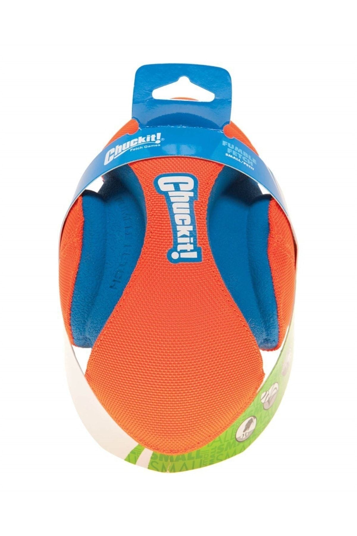 Chuckit Fumble Fetch en sert oyunculara dayanabilmesi için kalın 2100 denye Oxford kumaş ve kauçuktan üretilmiş ve EVA köpük ile doldurulmuştur. Fumble Fetch'i ister bir at getir topu, ister tek köpeğinizin başına oynaması için kullanabilirsiniz. Üzerindeki çıkıntılar köpeğinizin topu rahatça kavramasına, parlak renkleri ise açık alanlarda rahatça görülmesine yardımcı olur. 22 x13cm boyutlarında çapında ve 300gr ağırlığındadır.