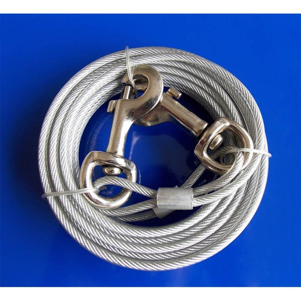 Bahçede yaşayan köpekler için güvenli bir gezinti alanı sağlayan, 6 metre uzunluğunda çelik bahçe bağlama halatı 0.5 cm kalınlığındır.