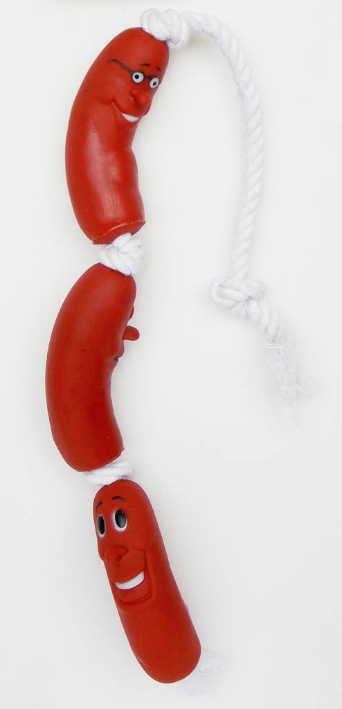 Sosis şeklinde ipe takılı 3 parçadan oluşan köpeğinizin severek oynayacağı vinyl köpek oyuncağı.Köpeğinizin sağlığı düşünülerek üretilmiştir.Dişlerdeki tartar oluşunu engeller ve köepeğinizin güzel vakit geçirmesini sağlar.Bakteri üretmeyen vinly den yapılmıştır.