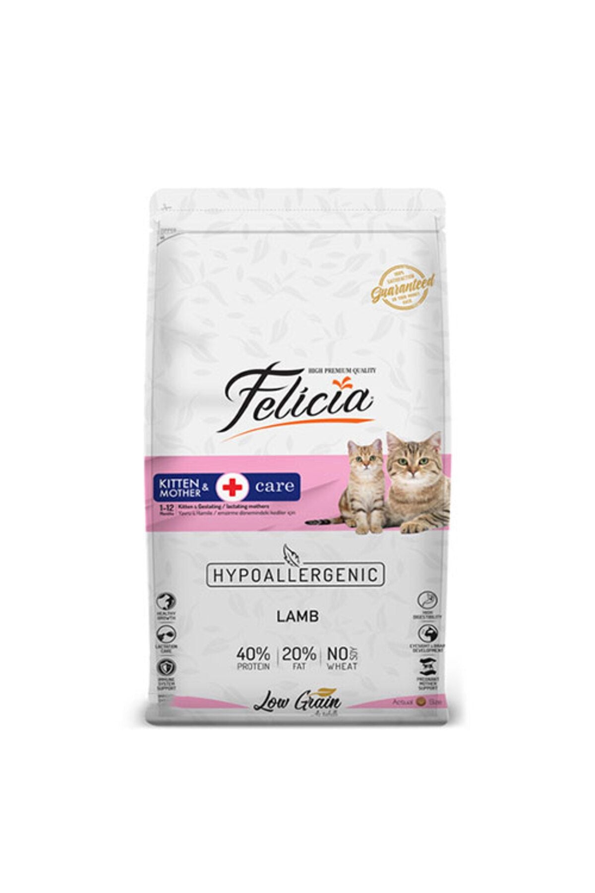 Sevimli dostlarımızın doğal yaşam şartlarına uygun şekilde beslenip, daha sağlıklı yaşayabilmeleri için beslenme uzmanlarımızla birlikte, tahıl oranı düşürülmüş hypoallergenic özel bir formül hazırladık. Yüksek oranda sindirilebilir hayvansal protein kaynaklarına sahip Felicia, sindirim ve alerji hassasiyetlerine karşı özel olarak geliştirilmiştir. Alerjik reasksiyonlarla ilişkili olan sığır eti, süt ürünleri, buğday, soya, patates, yapay tatlandırıcı, renklendirici, kimyasal aroma ve GDO içermemektedir!Felicia® Az Tahıllı ve Hypoallergenic Kitten&Mother Lamb Yaşamımız boyunca, duygusal bağ kurduğumuz birçok an vardır. Bazen yeni bir birey, bazen ise bir anne ya da operasyondan çıkan bir can ile yollarımız kesişir. Felicia Kitten&Mother ile sevimli dostlarımıza, tüm yaşam evrelerinde destek olmak için özel bir formülasyon hazırladık. Beslenmenin en temel yapı taşlarını barındıran bu formül, onların sağlığını ve mutlu gelişimini desteklemek için özel olarak geliştirildi. Protein oranı yüksek, beyin ve görme gelişimi için DHA içeren, anne sütünde bulunan temel besin maddelerini içerisinde barındıran ve güçlü bağışıklık desteği sunarak hayat standartlarını yükselten bu formül ile beklentilerinizi en iyi şekilde karşılamaya hazırız. Felicia Kitten&Mother yalnızca en kaliteli doğal bileşenleri içerir. Gerçek kuzu etinden gelen yüksek protein, güçlü ve sağlıklı kas yapısı oluşumunu destekler ve içeriğinde genetiği değiştirilmiş (GDO) ürünler bulunmaz.