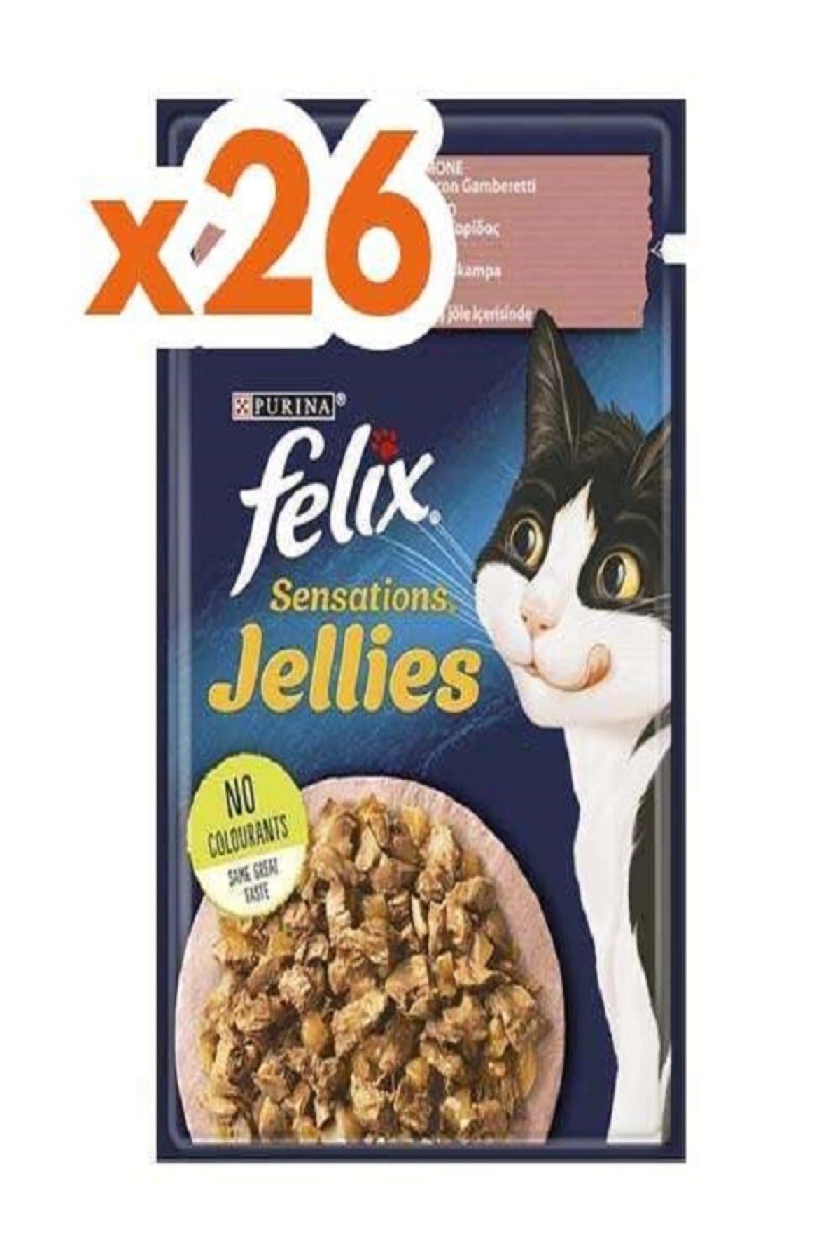 Felix Pouch Sensations Jellies Somon ve Karidesli Yaş Kedi Maması 85 Gr x 26 adet