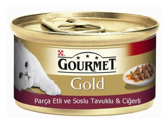 Gourmet Gold Parça Etli ve Soslu Tavuklu & Ciğerli Konserve Yetişkin Kedi Maması 24 x 85 G