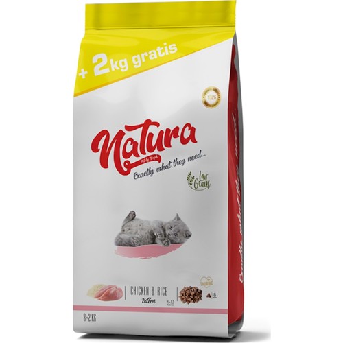NATURA yavru kedi maması, küçük taneleriyle rahatça çiğnenebilir ve eşsiz bileşenleriyle dengeli ve tam beslenme sunar. Yavru kediler için idealdir. Yavru kediler hastalıklara yatkındır, desteklenmeleri gerekir. NATURA Low Grain Kitten with Chicken & Rice zengin içeriğiyle gereken bütün desteği sağlayarak bağışıklık ve sindirim sistemlerini korur. Yavru kedilerin fiziksel ve zihinsel ihtiyaçlarını karşılar; hayata sağlıklı, mutlu bir başlangıç yapmalarına katkıda bulunur.