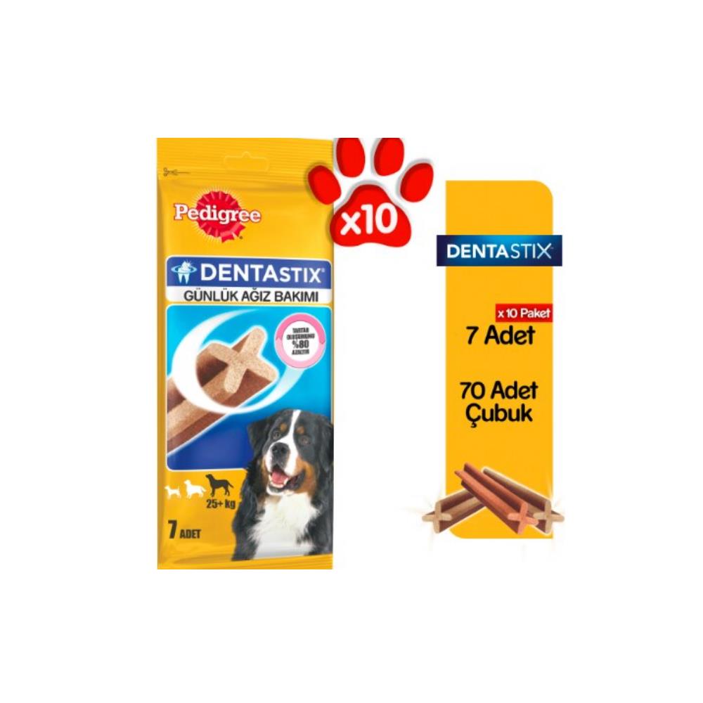 Pedigree Dentastix hergün kullanıldığında tartar oluşumunu %80 oranında azaltabileceği klinik olarak kanıtlanmıştır. Köpeğinize hergün Pedigree Denta stix vererek mutlu ve sağlıklı kalmasını sağlayın. 10 kg ve üzeri vücut ağırlığına sahip köpekler için uygundur.