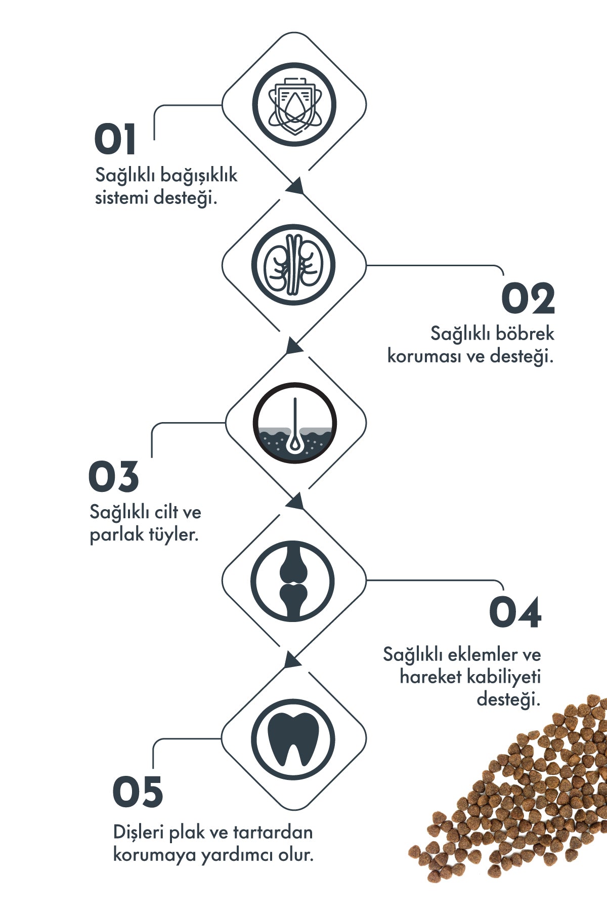 Düşük Tahıl Formülü Hassas sindirim sistemleri için özelleştirilmiştir.