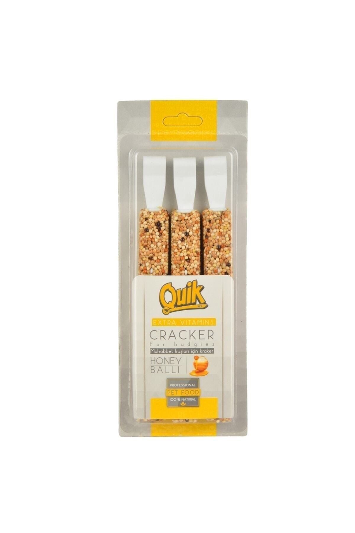 Quik Ballı Muhabbet Krakeri 3'lü Paket Muhabbet kuşları için özel olarak hazırlanmıştır. Kuşların severek yedikleri, içeriğinde bol miktarda bal içeren çubuk şeklinde krakerlerdir. Özel harmanlı içeriği ile tam ve besleyici sunum sağlarken aynı zamanda vitamin ve mineral açısından eksiksiz bir şekilde desteklenmiştir. Dostlarımızın ihtiyaç duydukları besinleri tam ve dengeli bir şekilde içerir. ; Ödül olarak verilebilir. Kuşlar birbirine yapışmış halde olan yemleri yerken enerji sarf ederek daha formda kalır.Aldığı vitamin ve minerallerle birlikte sağlıklı bir gaga yapısına kavuşur.