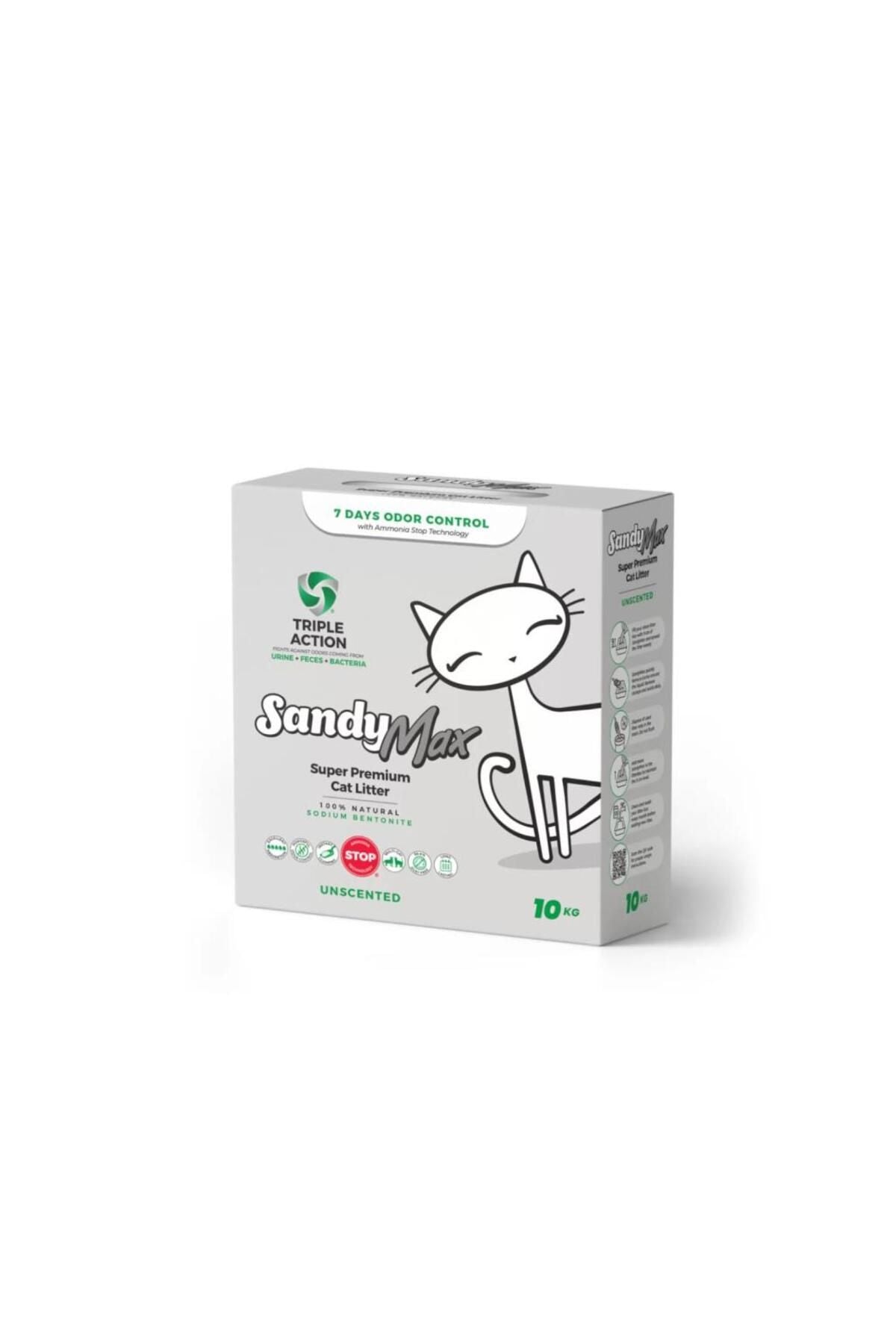 Sandy Max Triple Action Tozsuz Topaklanan Bentonit Doğal Kedi Kumu, %100 doğal sdym bentonitten üretilmiş, etkili koku kontrolü sağlayan, yüksek topaklanma gücüne sahip bir kedi kumudur. 7 gün boyunca koku kontrolü sağlama özelliği ile kedinizin tuvaletini temiz tutar. Ammonia Stop Teknolojisi, idrar, dışkı ve bakterilerin oluşturduğu kötü kokuları etkili şekilde engeller.