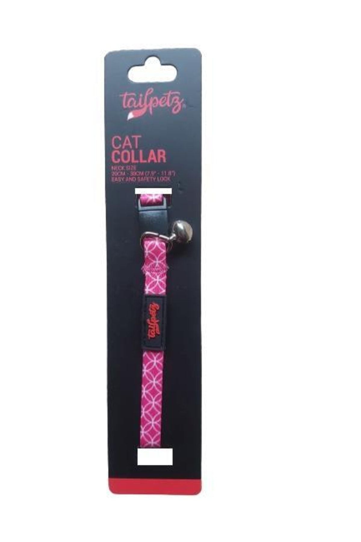 Desenli ve çıngıraklı ayarlanabilir kedi boyun tasması. Acil durumlarda ve aşırı zorlamalarda kolay açılan kilide sahip (easy and safety lock ) özel dokuma kedi tasması. Birçok kedi kullanmakta olduğu düşük kaliteli boyun tasmalarının bir yere takılması veya sıkışma sonrası onları nefessiz bırakması sonucu yaralanmakta veya istenmeyen sonuçlar doğabilmektedir. Kolay açılabilir kilit sistemine sahip tailpetz kedi boyun tasmaları sayesinde kedinizde gönül rahatlığıyla kullanabilirsiniz. Genişlik: 1cm. Ayarlanabilir uzunluk: 20- 30 cm.