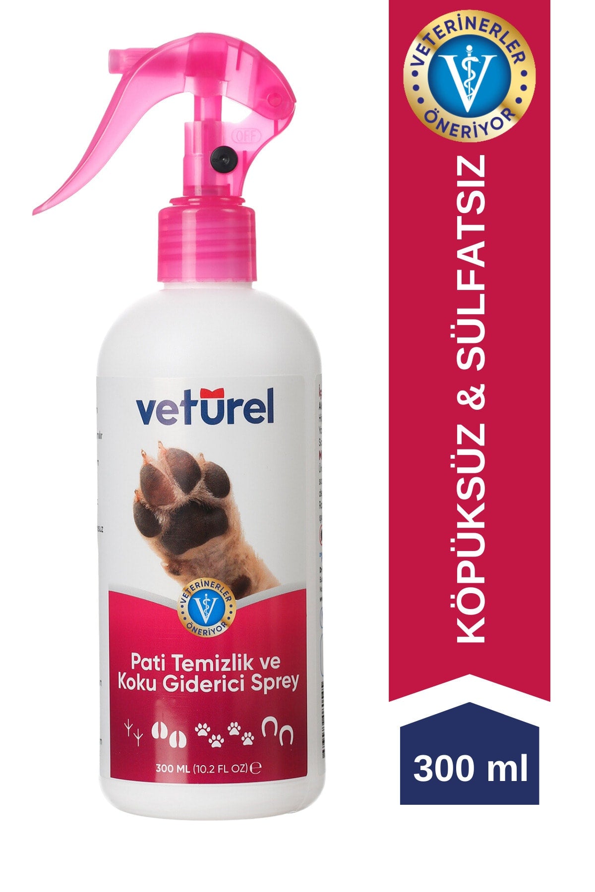 Dışarıda gerçekleşen keyifli bir yürüyüşte zemindeki tüm kir ve kalıntılar patilere nüfus eder. Veturel Pati Temizlik ve Koku Giderici Sprey kir ve kalıntıları uzaklaştırırken uzman bakım sunar.