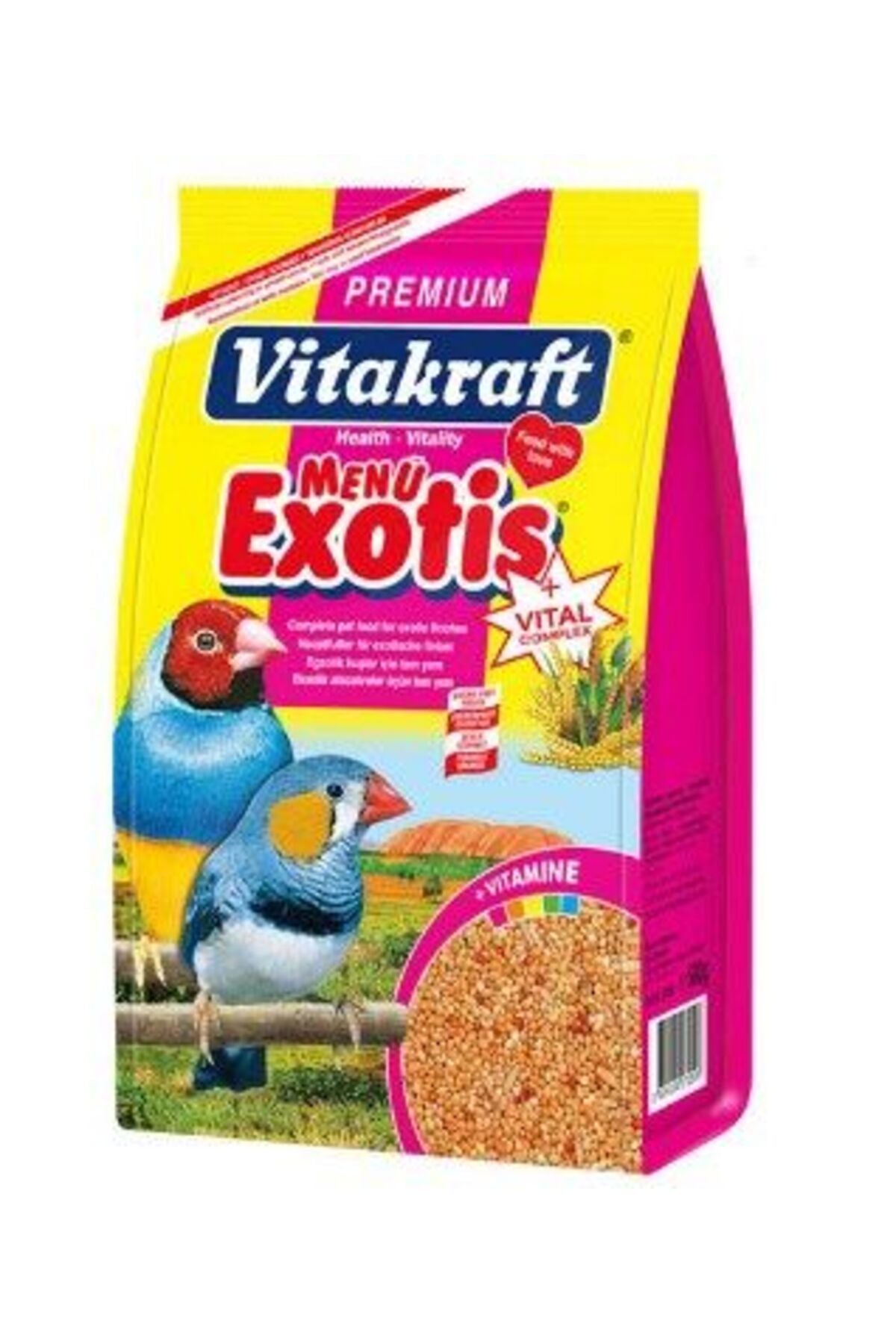 Vitakraft Menü Egzotik Finch için, tam bir beslenme sağlayan, lezzetli ve değerli bileşenlerden oluşan, vitaminli, sağlıklı Vitakraft Egzotik Finch yemidir. Egzotik Finch Kuşları için beslenme alışkanlıkları incelenerek formüle edilmiş temel Egzotik Finch yemi. Doğal alışkanlıklarından esinlenerek ihtiyaç duydukları tüm tahıl ve vitaminleri doğru oranda ihtiva eden Egzotik Finch yemidir. Vitakraft Menu Jod Vital Complex, Egzotik Türler için son derece zengin ve türe özgü içeriğe sahip, yüksek protein içeren sağlıklı beslenme standartlarına uygun kaliteli karışık içerikli temel yemdir. Genel sağlıkları için önem taşıyan iyot katkılıdır. Şeker içermez. Aromasını ve tazeliğini koruyan hava almayan pakettedir. Protein değeri yüksek ve besleyicidir. Vitamin katkııdır. Vitakraft Menü Egzotik Finch Yemi İçindekiler. Vitakraft Menü Egzotik Finch Yemi kuşlar için, ekstra enerji sağlayan vitaminli kuş yemi, özel içeriği sayesinde yerken keyif alarak ve severek yiyebilecekleri, vitaminlerle zenginleştirilmiş, komple yemdir. Özel formülü vitaminli içeriği ile daha sağlıklı bir yaşam sürmesini sağlar. Bir çok tür genel olarak tohum tahıl meyve böcek ve çeşitli yapraklarla beslenirler. Yaşam koşulları ve yem yoğunluğuna göre yaşam ortamları değişiklik gösterebilir. Nerede yaşarlarsa yaşasınlar çeşitliliği fazla bir beslenmeleri vardır.