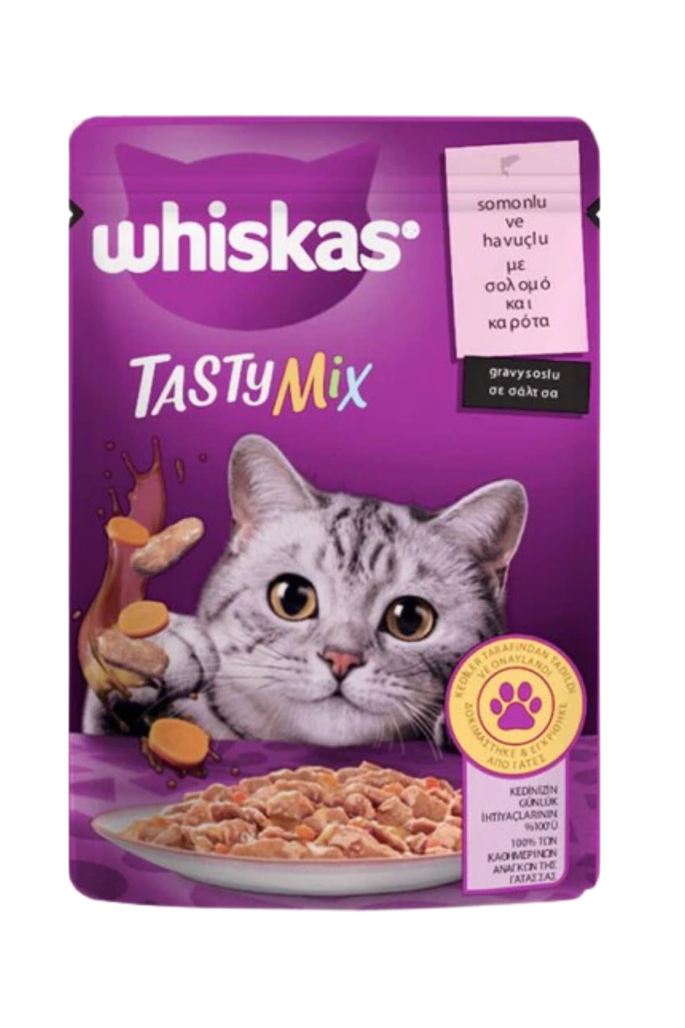 Whiskas Tastymix Somonlu & Havuçlu Yetişkin Kedi Yaş Maması 28X85 gr
